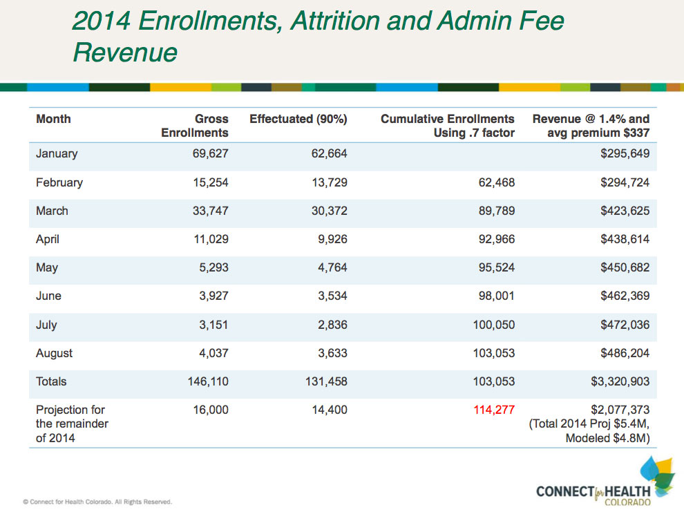 That means that as of mid-November, they anticipate 114,277 enrollees to be currently enrolled as of that date. Again, subtracting out the SHOP enrollees, that should give roughly 112,300...or 99.5% of what Colorado started out with in April.
