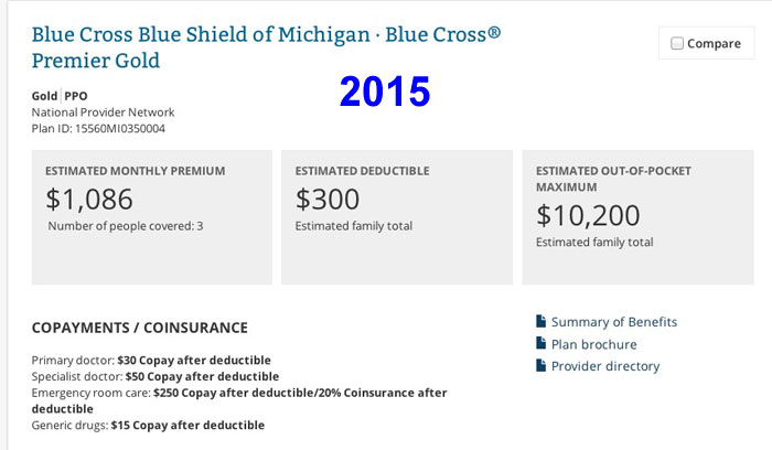 - I've already plugged in my own family's current BCBSM policy to compare it against 2014. In our case, the full price (without any tax credits) has gone up by 7.4%: