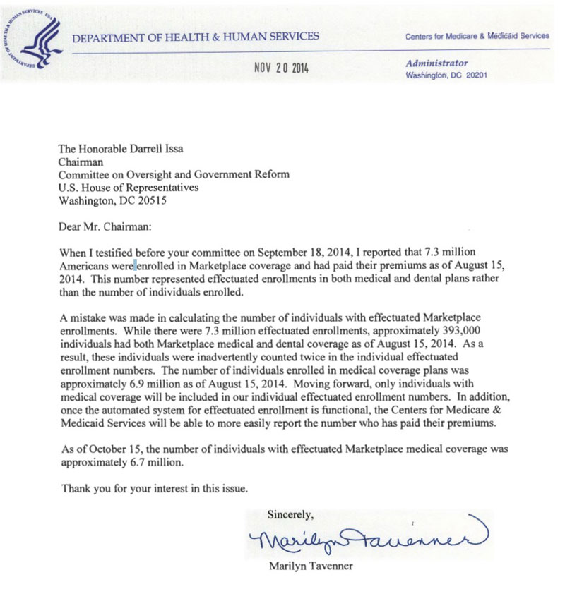 Why Tavenner gives 6.9 million as the corrected figure instead of 7.0 million (or 6.98 million) in this letter, I can't say, although I'd imagine that under the circumstances, she's decided it would be better to err on the side of caution, which is probably wise...