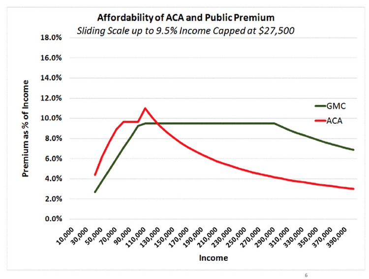 There is one interesting thing which I noticed in the PowerPoint presentation which explained the cost & funding problems of the Green Mountain Care initiative, however; check out page 6 of the presentation, which compares the affordability of Green Mountain Care against the Affordable Care Act across the income spectrum: