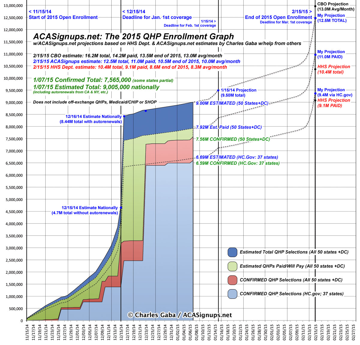 As always, it's important to remember that up to 12% of these QHP enrollees likely will not actually pay their first premium at all, although I suspect there will be a lower percentage of non-payments this year for a variety of reasons. If so, then the actual paying QHP enrollee number will be closer to 11 million.