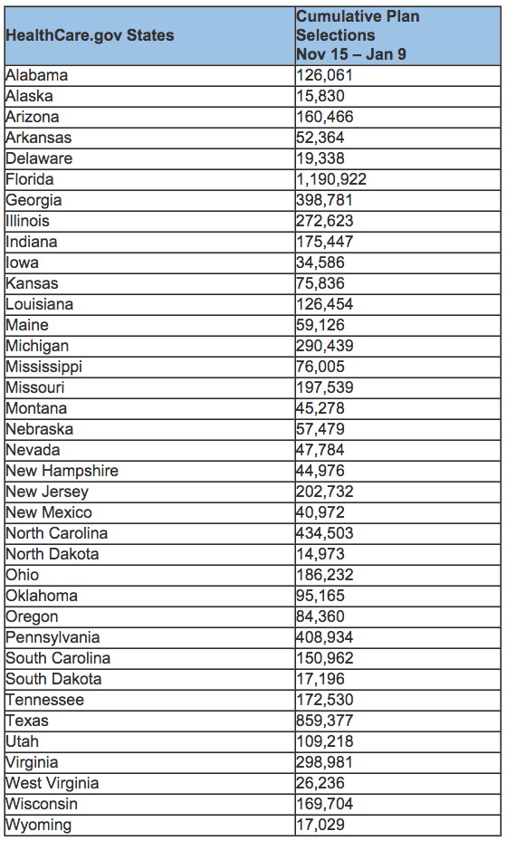 6.75M QHPs thru Jan. 9th via HC.gov...with STATE-LEVEL BREAKDOWN!