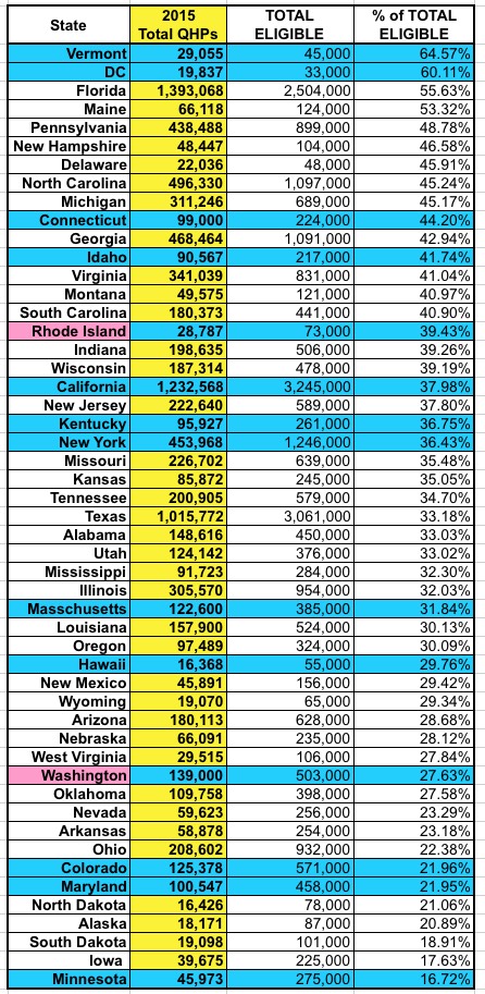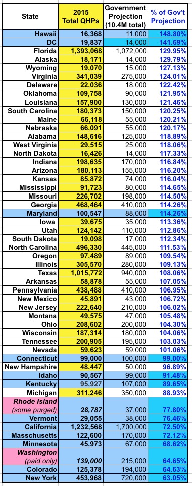 3) For Rhode Island and Washington, I'm using a different number than the other states; RI is the QHP selections, but after past-due non-paid ones have been purged from the total; in WA, they're only reporting the paid QHPs at all, so I don't know what the total selections are to begin with.
