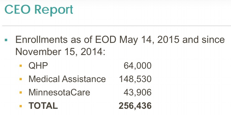 Hot off the presses, the Minnesota ACA exchange, MNsure, just held their monthly board meeting and released some new enrollment numbers:
