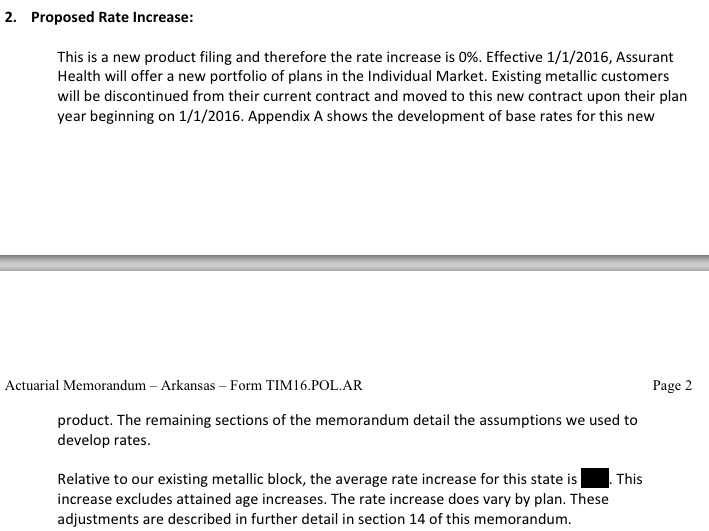 UPDATE: OK, thanks to commentor "intheknow" who points out that according to the "redacted" rate filing memorandum for Time Insurance in Arkansas, the discrepancy is explained as such: