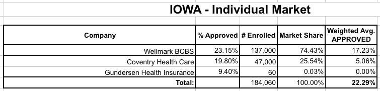 Assuming this is all accurate and I'm not missing anything, Iowa looks like roughly a 22.3% weighted average rate hike next year.