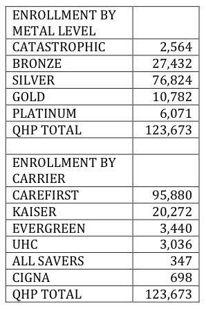 The QHP total includes 5,436 people who enrolled during a tax season Special Enrollment Period from March 15 through April 30. Marylanders who owed a tax penalty because they did not have health coverage in 2014 were allowed to enroll for 2015 coverage after open enrollment ended. Of those enrollments, 1,539 were in the 18-34 year-old age group; 2,487 were 35-54, and 1,410 were in the 55+ age group.