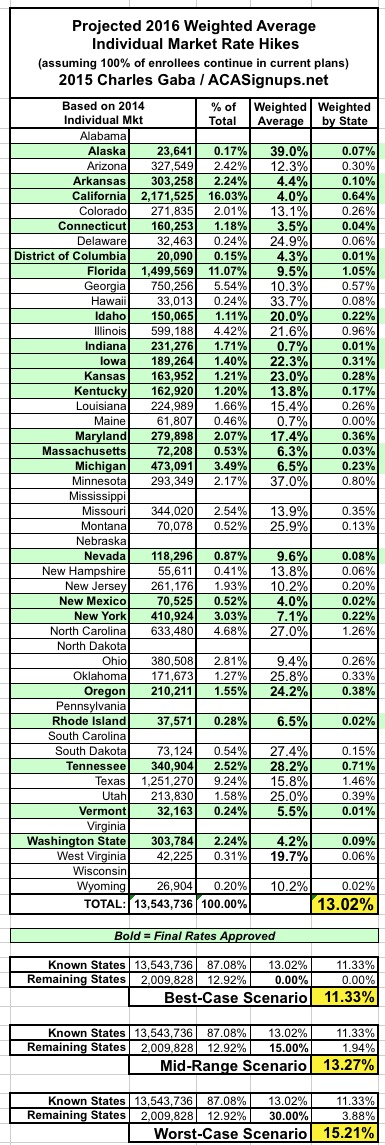 (near) Final Projection: National 2016 Weighted Avg. Rate Hikes to be between 11-15%