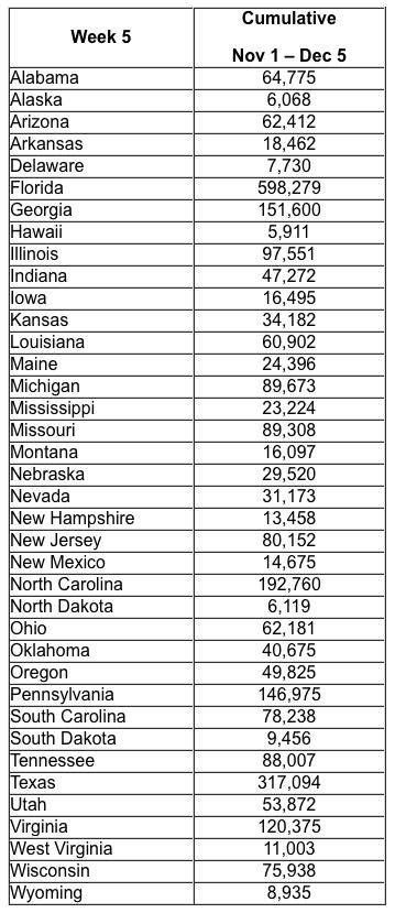 • Louisiana, South Carolina and Tennessee have already surpassed last year's 12/15 numbers (with 10 days to go)