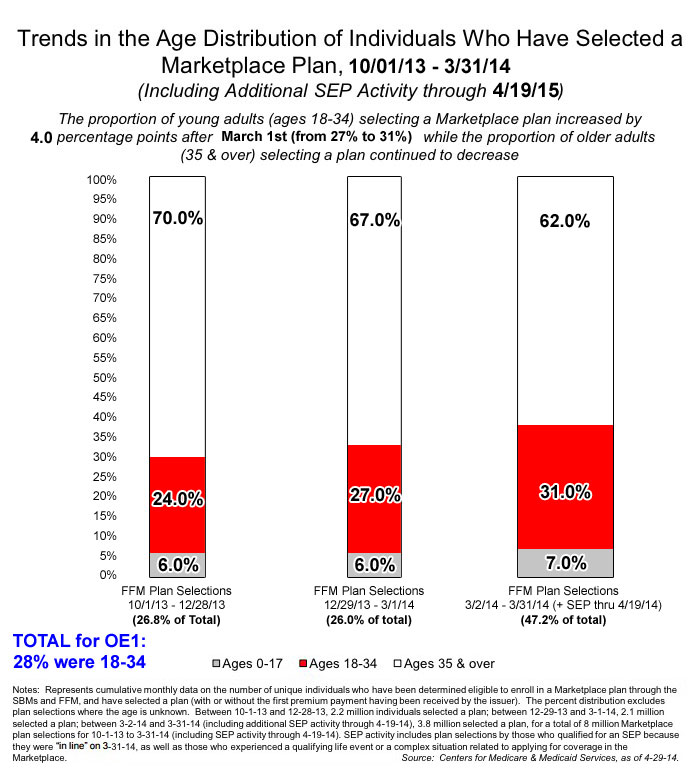 The problem is that 26% is actually lower than last year's 28% in the 18-34 year bracket. The hope was that the percentage of "YIs" would increase going forward, to help keep premiums from increasing too dramatically.