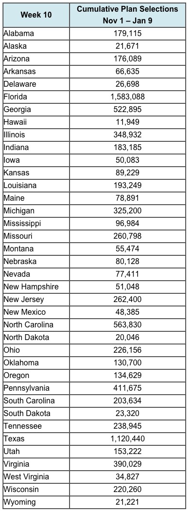 74K via HC.gov likely means around 100K nationally, which means that the grand total as of January 9th came in at around 11.5 million after all (which I had already expected)...but yeah, I'm lopping around 700K off of my final projection.