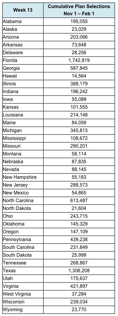 Health Insurance Marketplace Open Enrollment Snapshot - Week 13 • January 24, 2016 – February 1, 2016