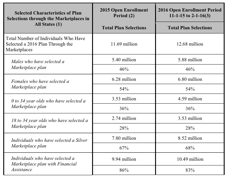 The report touts the increased percentage of active renewals (ie, people actually going to the exchange site and choosing their 2016 plan, whether renewing the existing one or switching to a different one. 59% of those who renewed their policies did so actively this year, which is an increase over 2015's 53%...but again, about 800,000 of those people had no choice but to "actively renew" (or drop off the exchanges entirely) since their Co-Ops closed up shop. Still, the more active re-enrollees, the better, even if they stick with the exact same policy as my family did for a third year in a row: