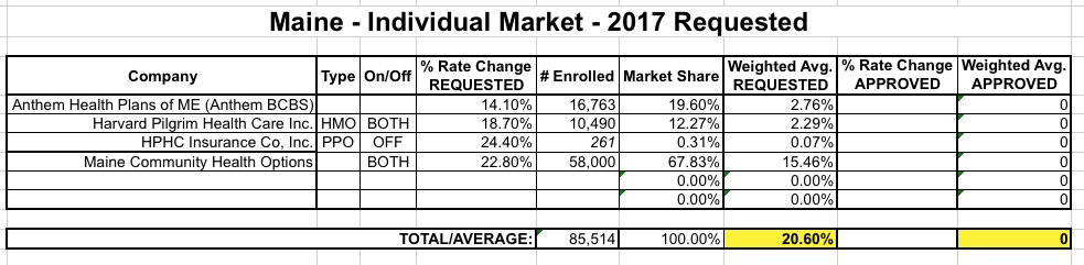 Today, Maine has their requests available...and after virtually flat rates this year, 2017 is looking less flattering: