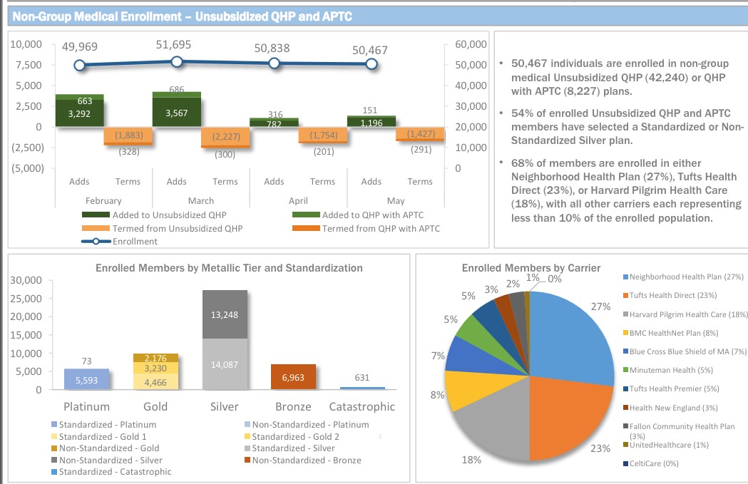 As I've noted the past few months, unlike most states, the Massachusetts Health Connector has not only seen no net attrition since the end of Open Enrollment, but has actually seen a net increase in enrollment...mainly due to their unique "ConnectorCare" policies, which are fullly Qualified Health Plans (QHPs) but have additional financial assistance for those who qualify and which are available year-round instead of being limited to the open enrollment period.