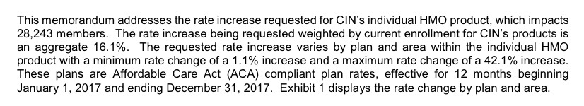 Some are presumably being dropped from UnitedHealthcare, others from MDwise...but I have no idea how many that might be. The best case scenario would be if MDwise has every single one of them, or 42% of the total; if that's the case, the overall weighted average drops to a 16.0% increase.