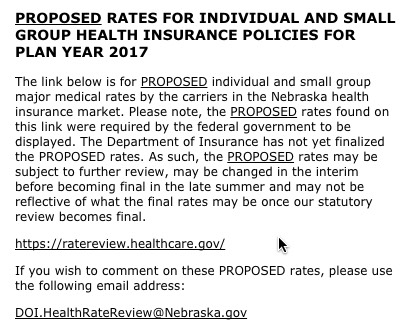 On a more amusing note, judging by the overly-defensive wording on the Nebraska Dept. of Insurance website, I'd say they're getting a lot of complaints from residents about these PROPOSED rate hikes...