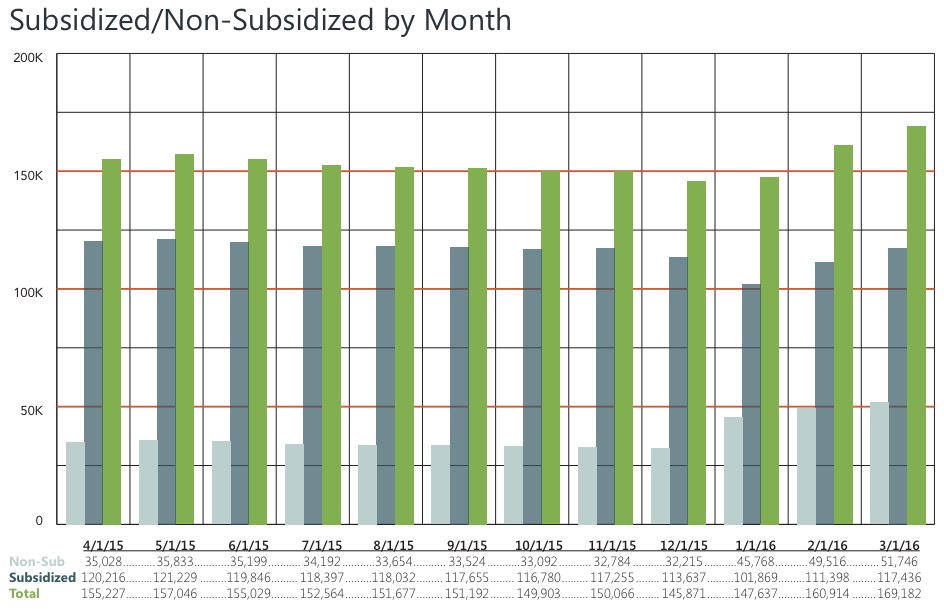 - Fewer customers are relying on subsidies. Nearly 52,000 customers enrolled in non-subsidized Qualified Health Plans — a 58-percent increase over the previous year. Approximately 31 percent of all enrollees selected full price plans, electing no financial help from a tax credit.