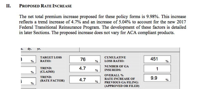 IMPORTANT: Please note that the Cigna filing appears to only be for off-exchange policies. Unless I'm missing something, it appears that Cigna is dropping off of the ACA exchange in 2017.