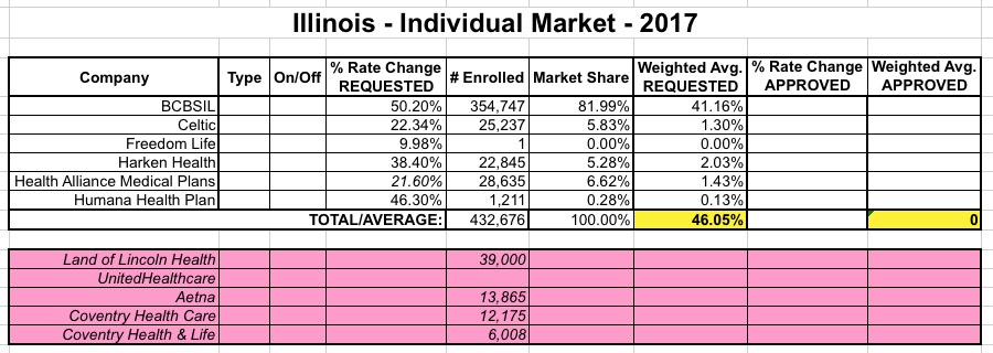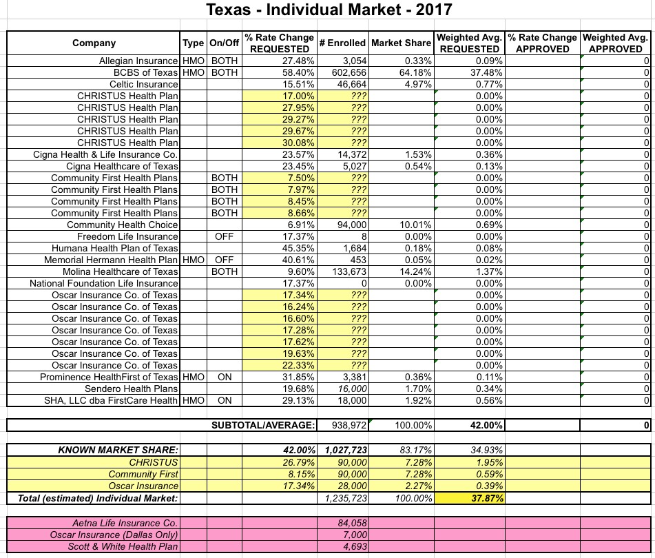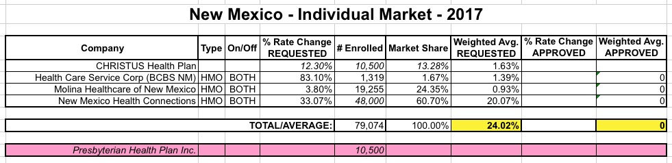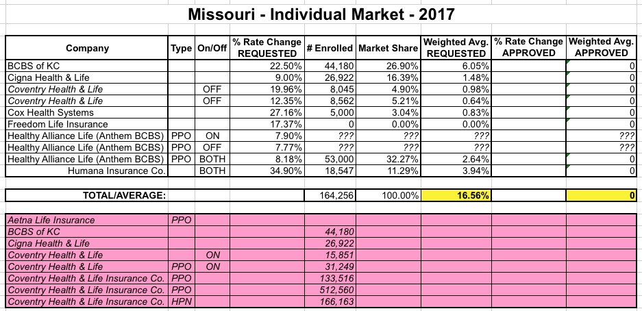 With all that in mind, here's a whole mess of revised/updated requested rate change tables for various states. The updated numbers will be plugged into the 50-state spreadsheet, with higher averages colored in pink while lower averages are colored light green.