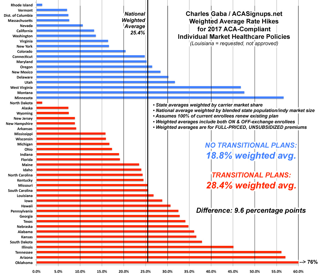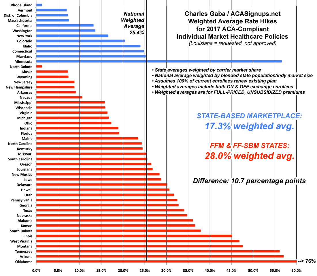 UPDATE x2: 2017 Rate Hikes: Yes, Medicaid Expansion matters. So do State-Based Exchanges and Transitional Policies