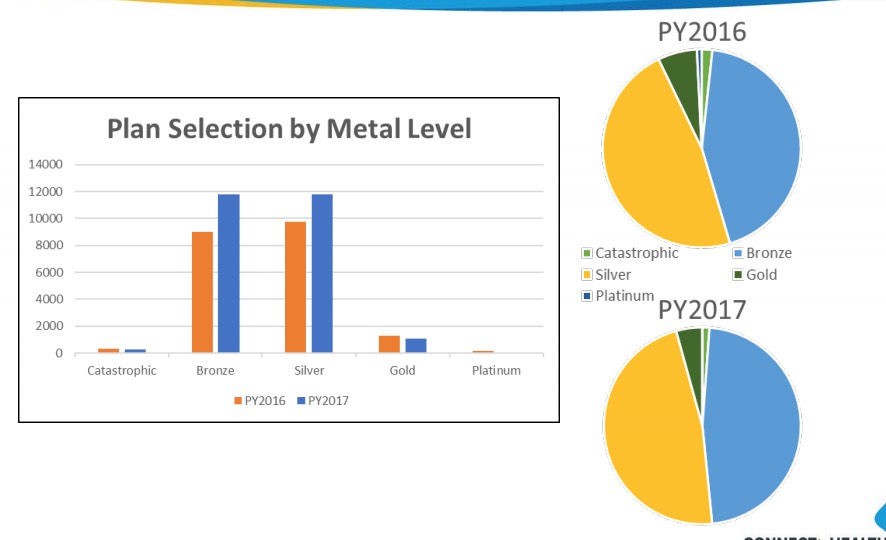 However, there's also another important tidbit here (last slide below): While the average unsubsidized premium rates for Colorado exchange enrollees officially went up 16.9%, the final premium cost to the enrollees is actually dropping by 1.9% (from $214/month to $210/month):