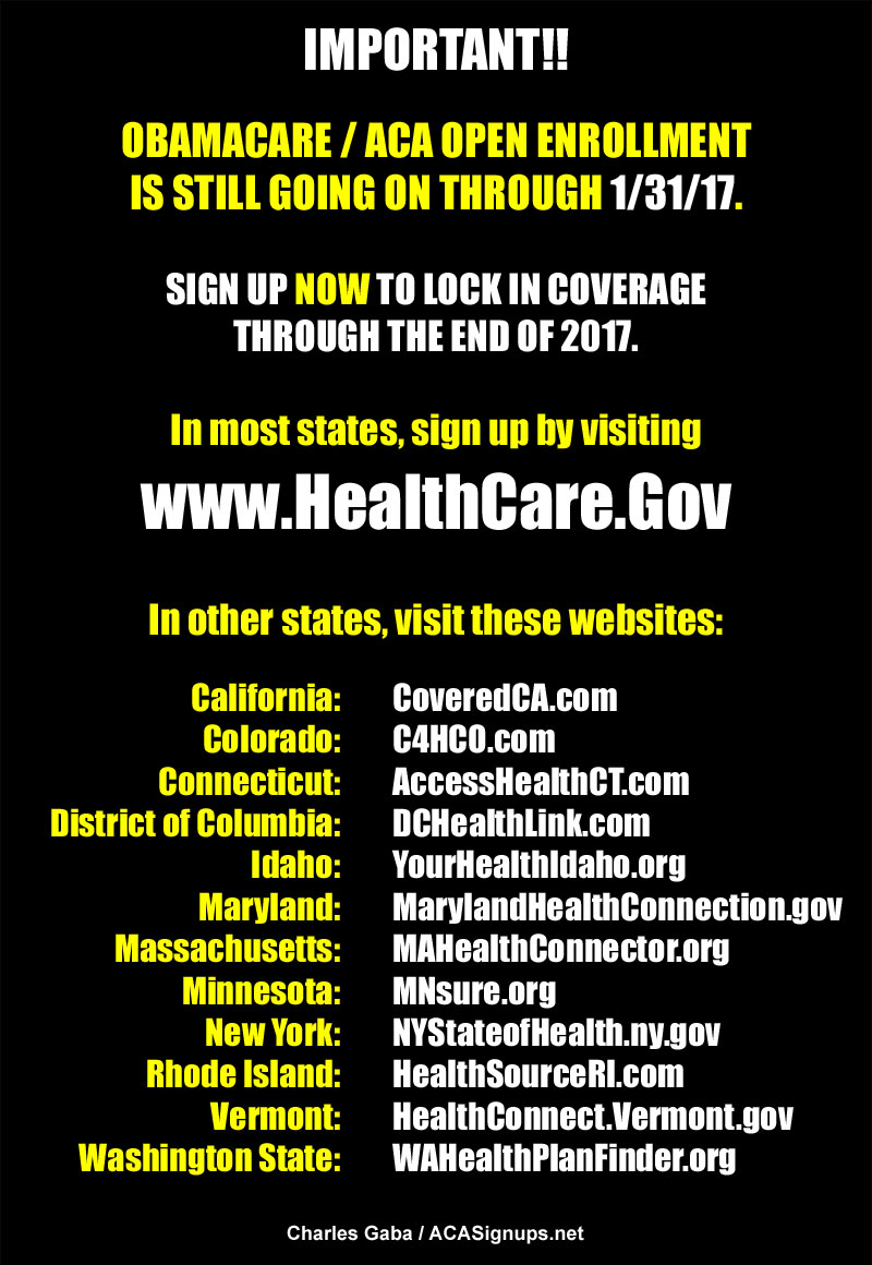 IN ADDITION, while no one (including them) has the slightest clue which "replacement plan" the GOP has in mind for the ACA, many of the various "plans" floating around include a "continuous coverage" clause--that is, you'd only be covered for pre-existing conditions if you've maintained continus coverage prior to the new law going into effect. This means that if you let your coverage lapse for, say, 9 months this year, you might have to wait another 9 months before being allowed to sign up next year.
