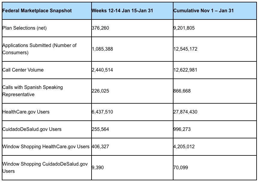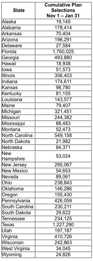 A more detailed report that looks at plan selections across all states for the entire Open Enrollment period will be released in March.