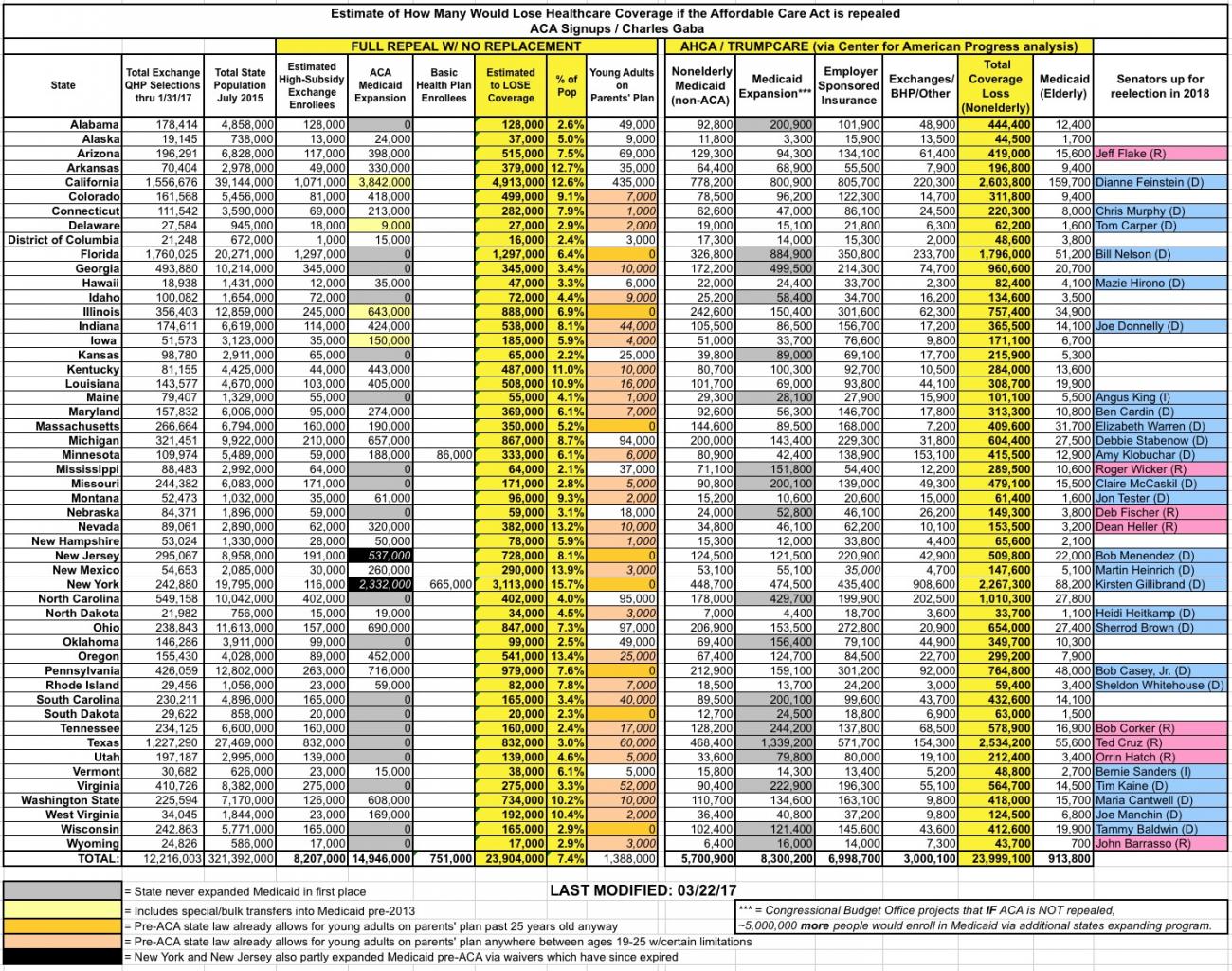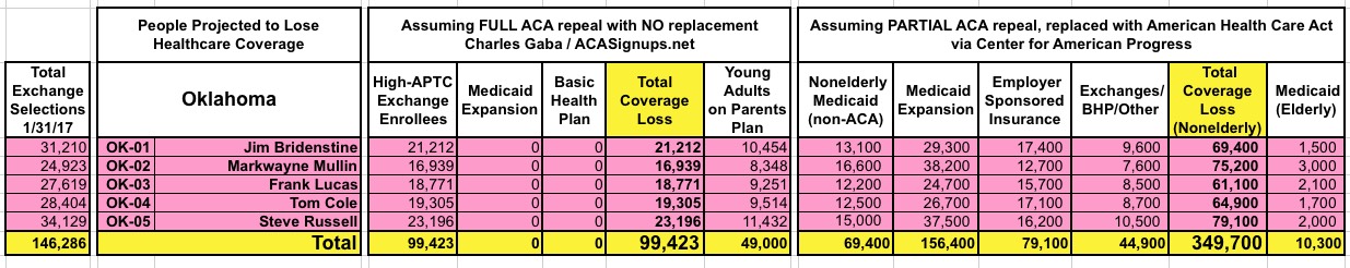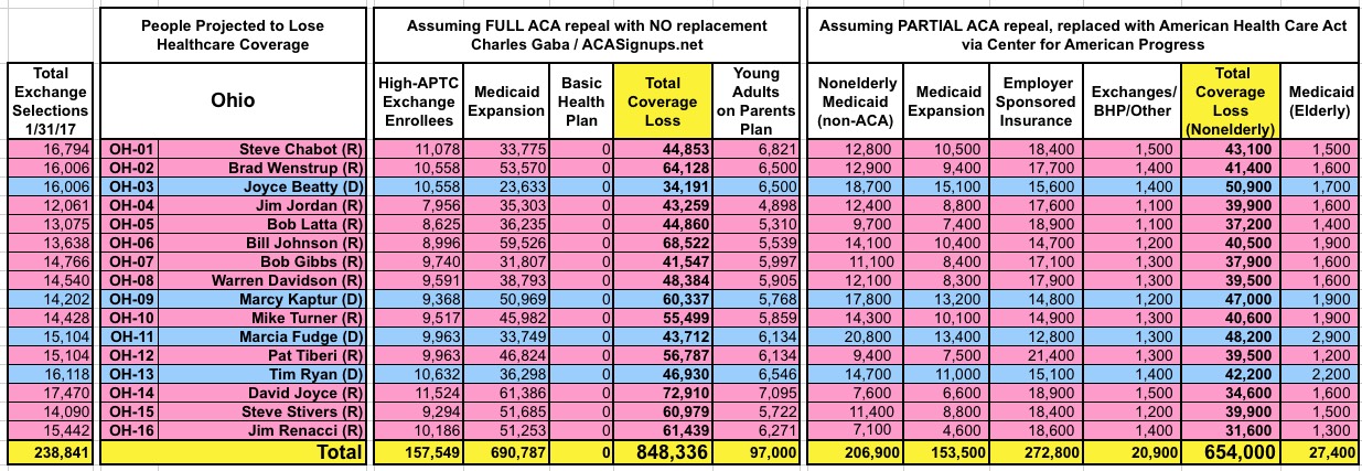UPDATE: If you scroll all the way to the bottom, I've added a completely updated state/national-level table as well, reflecting both the "clean repeal" and Trumpcare scenarios.