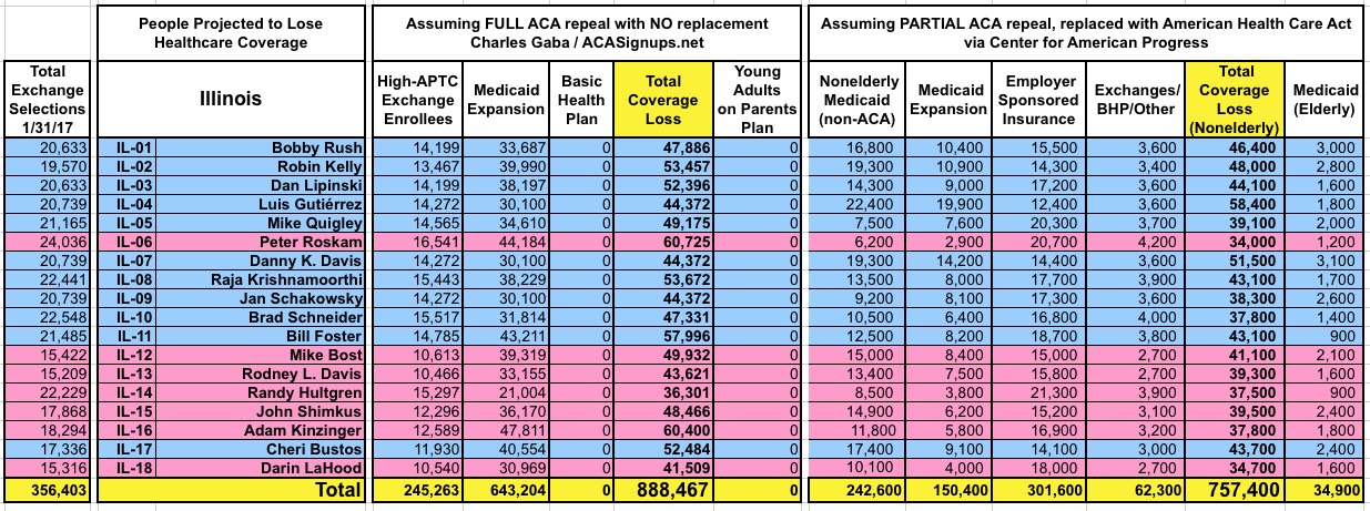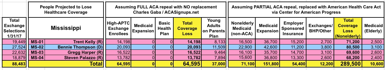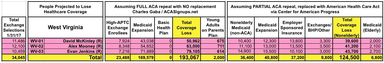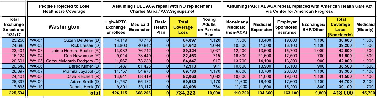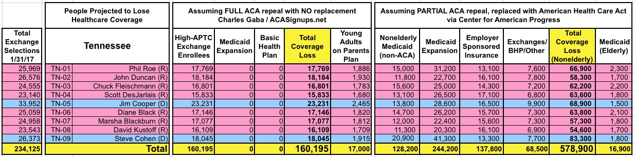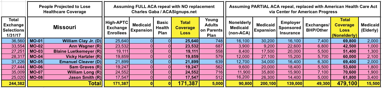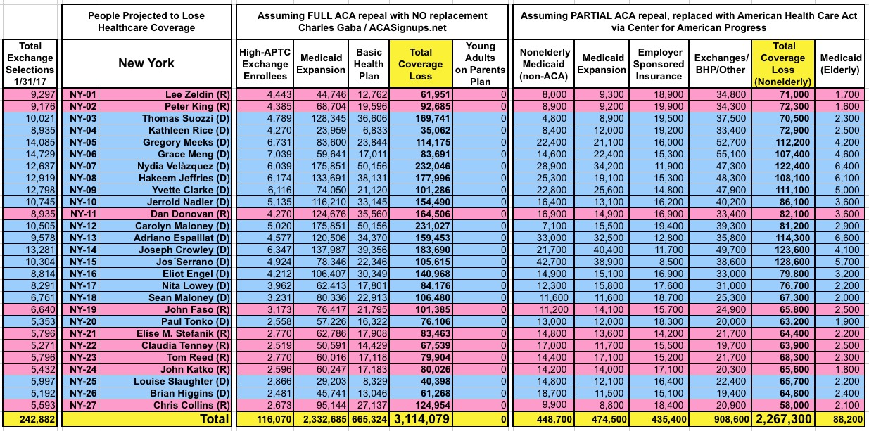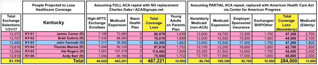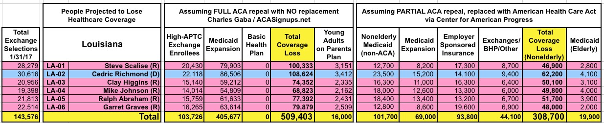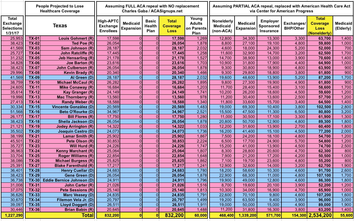 How Many Would Lose Coverage: "Clean Repeal" vs Trumpcare: ALL 435 DISTRICTS