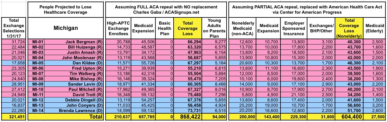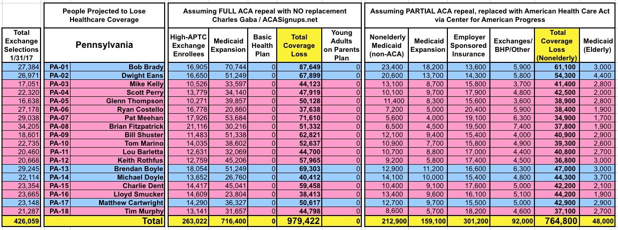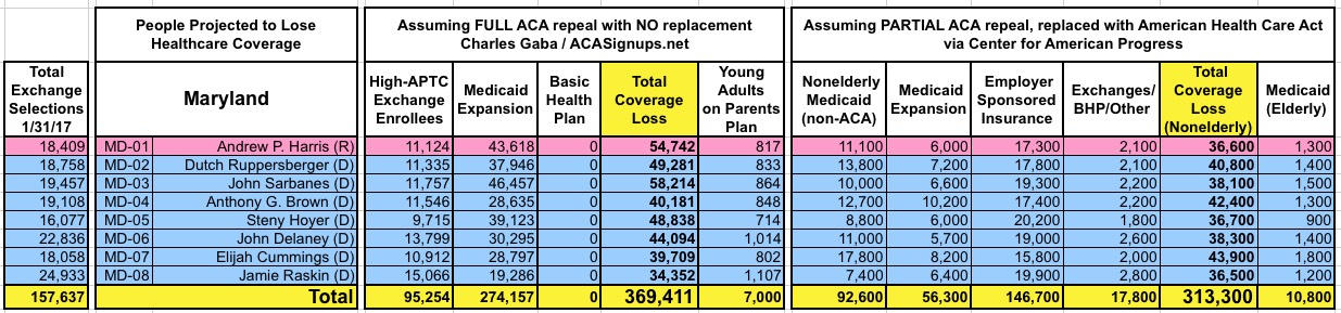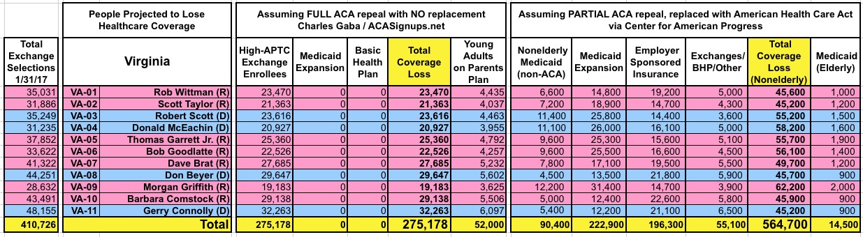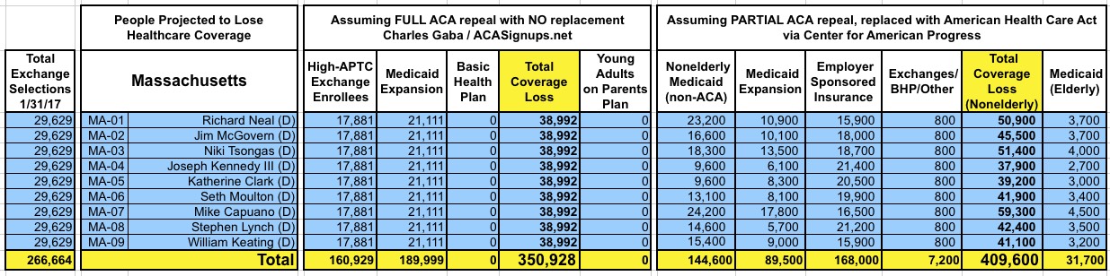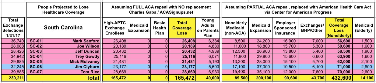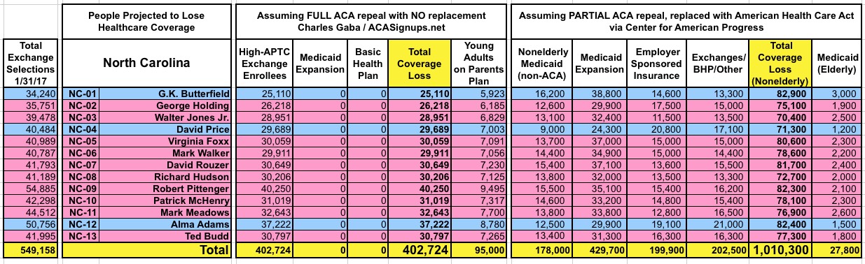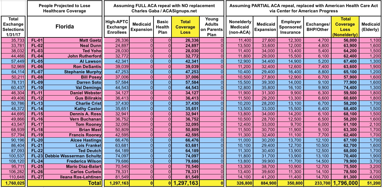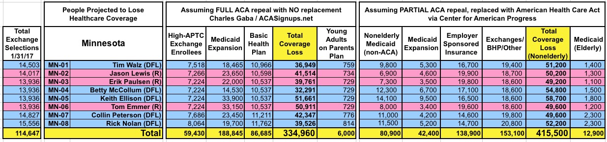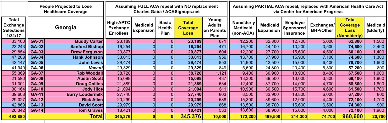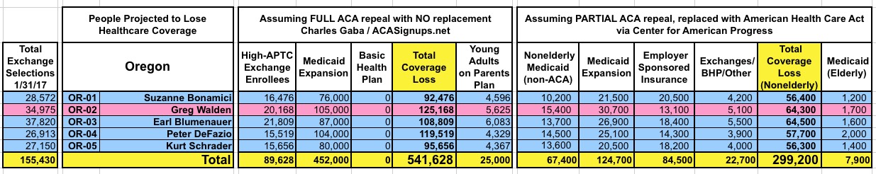 How Many Would Lose Coverage: "Clean Repeal" vs Trumpcare: ALL 435 DISTRICTS