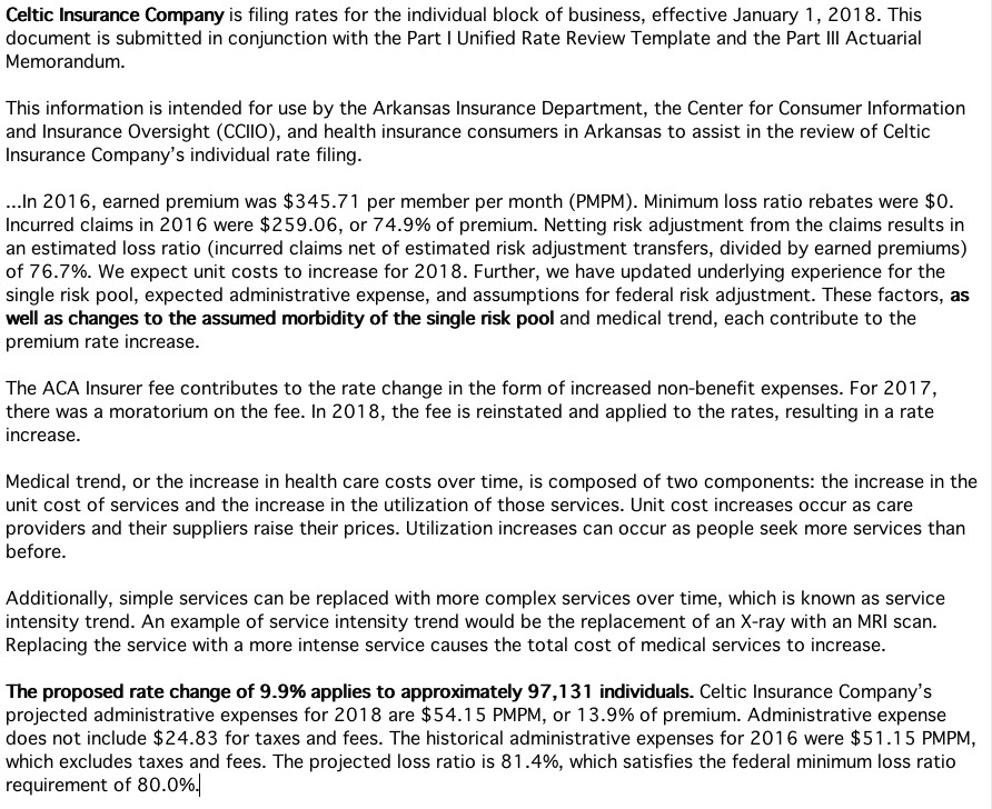 2018 Rate Hikes: Arkansas: 10% without CSR sabotage, 18% with.