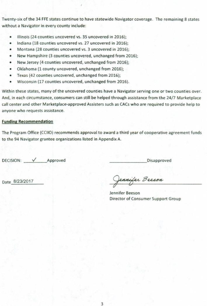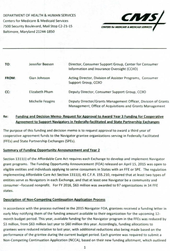 The documents are decision/financial docs relating to Navigator grants, intended to be distributed to various non-governmental organizations who help teach individuals how to understand health insurance policies and how to purchase them on the health care exchanges. I've been informed that up until the day HHS issued its press release cutting the Navigator grants, CMS was working on awarding those grants using close to the same amount of funds as last year.