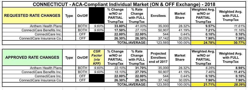 UPDATE: Connecticut: APPROVED rate hikes: 28.4% assuming NO CSRs (+ 1-week enrollment extension confirmed)