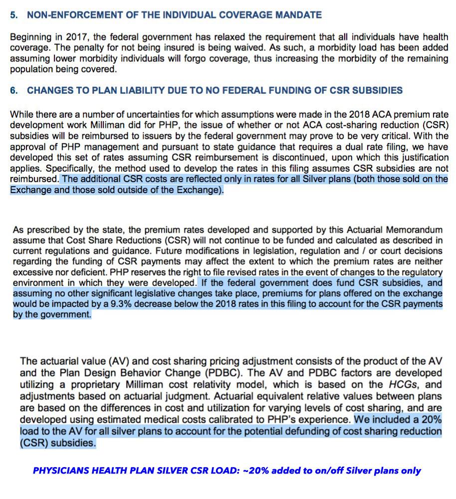 Several healthcare wonk colleagues and I have been carefully piecing together the CSR sabotage price loading strategies for every state over the past week or so. This changed from a theoretical exercise to a real one due to Donald Trump officially pulling the plug on Cost Sharing Reimbursement payments effective immediately late Thursday night.