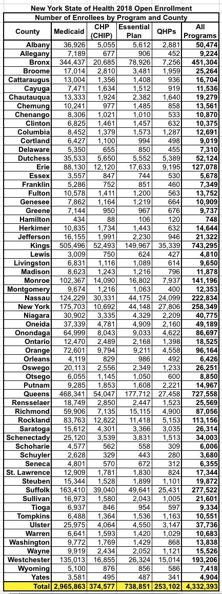 Enrollment data for all counties and programs is available at https://info.nystateofhealth.ny.gov/2018countylevelenrollmentdata