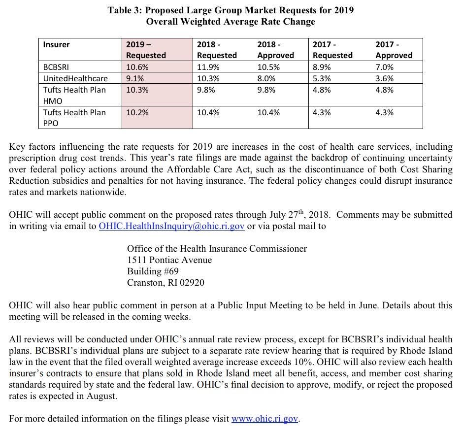 Rhode Island is the 5th state (to my knowledge) to officially post their preliminary 2019 individual market rate change requests.