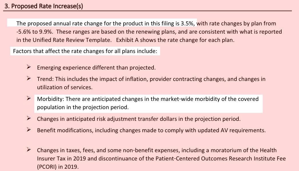 The overall average requested rate increase is around 12.2% between the two. Neither carrier states just how much of their requested increase is due to mandate repeal or #ShortAssPlans (CareSource did list it...but then redacted it from public view). The Urban Institute projected around an 18.7 percentage point impact; 2/3 of that is around 12.5 points, so that's what I'm assuming until further notice.