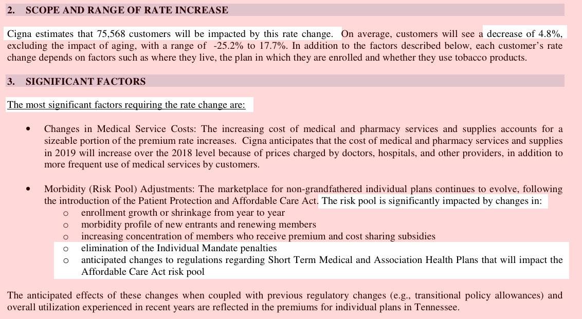 Tennessee: Preliminary 2019 #ACA rate change: 5.7% decrease...but guess what it would be without ACA sabotage?