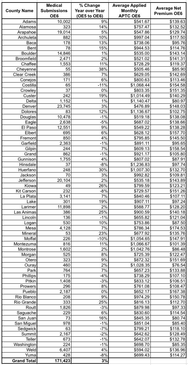 However, either way, Colorado joins Massachusetts in increasing their ACA open enrollment numbers every year for five years straight, bucking the national trend!