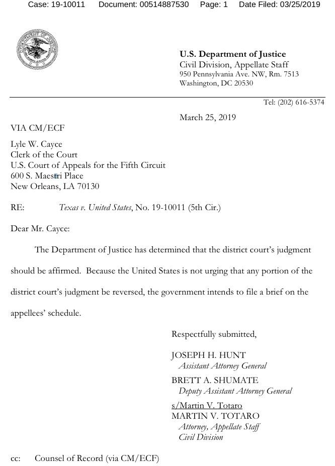 Trump's DOJ drops the last remnants of pretense: Agrees w/TexasFoldEm plaintiffs that the ENTIRE ACA should be scrapped