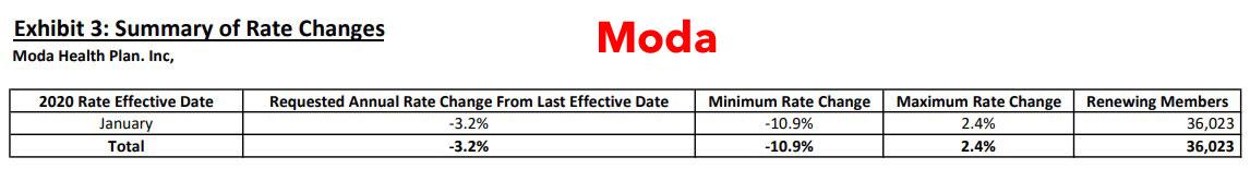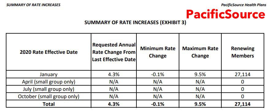 Oregon: PRELIMINARY 2020 ACA Exchange Premium Rate Changes: 3.3% increase