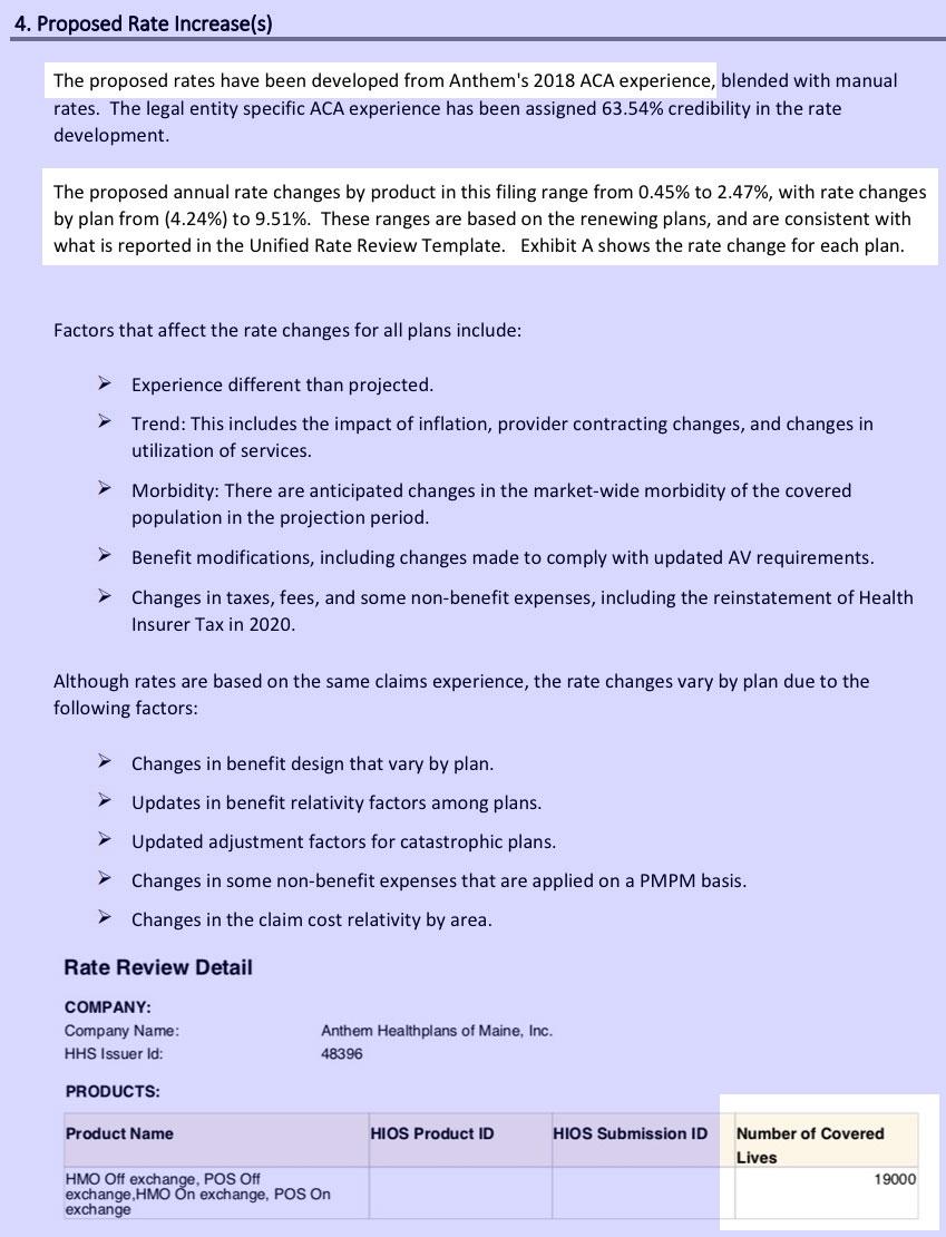 It's important to keep in mind why premiums are going up. I've included screenshots of the rate filing memos--Maine Community Health Options, which holds over 50% of the individual marketshare, clarifies that the combination of the individual mandate being repealed and the expansion of #ShortAssPlans are causing an 11% increase. They also note that Maine's recent Medicaid expansion implementation may be a factor, although normally that reduces premiums since lower-income populations tend to be less healthy than higher-income populations, so I'm not sure what to make of that.