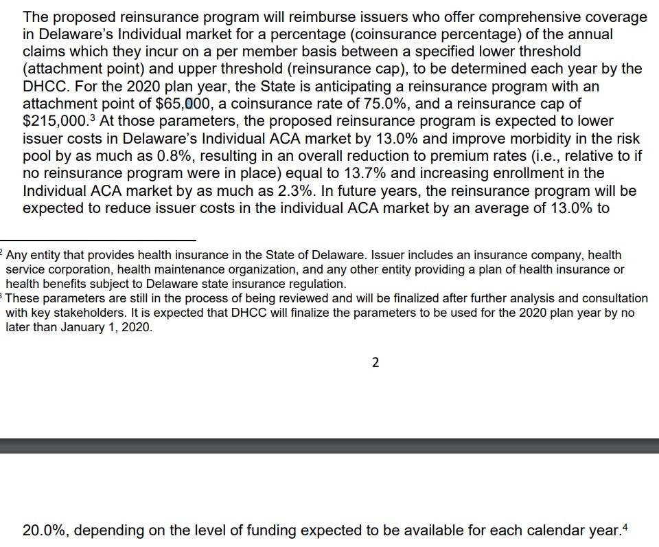 It is important to note, that the proposed rate decrease is unrelated to Delaware’s intended submission of a 1332 Waiver to establish a reinsurance program. If the application process is successful, the actuarial consultant’s projections are correct, and the State of Delaware secures adequate funding, the waiver program may decrease rates by an additional 20%.