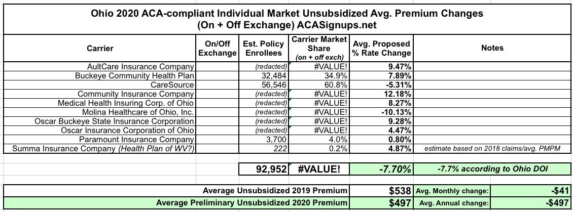 Ohio: APPROVED 2020 #ACA exchange avg. rate changes: 7.7% *decrease*