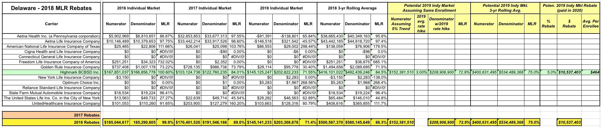 Exclusive! Delaware: 2018 MLR Rebate Payments (& potential 2019 rebates)