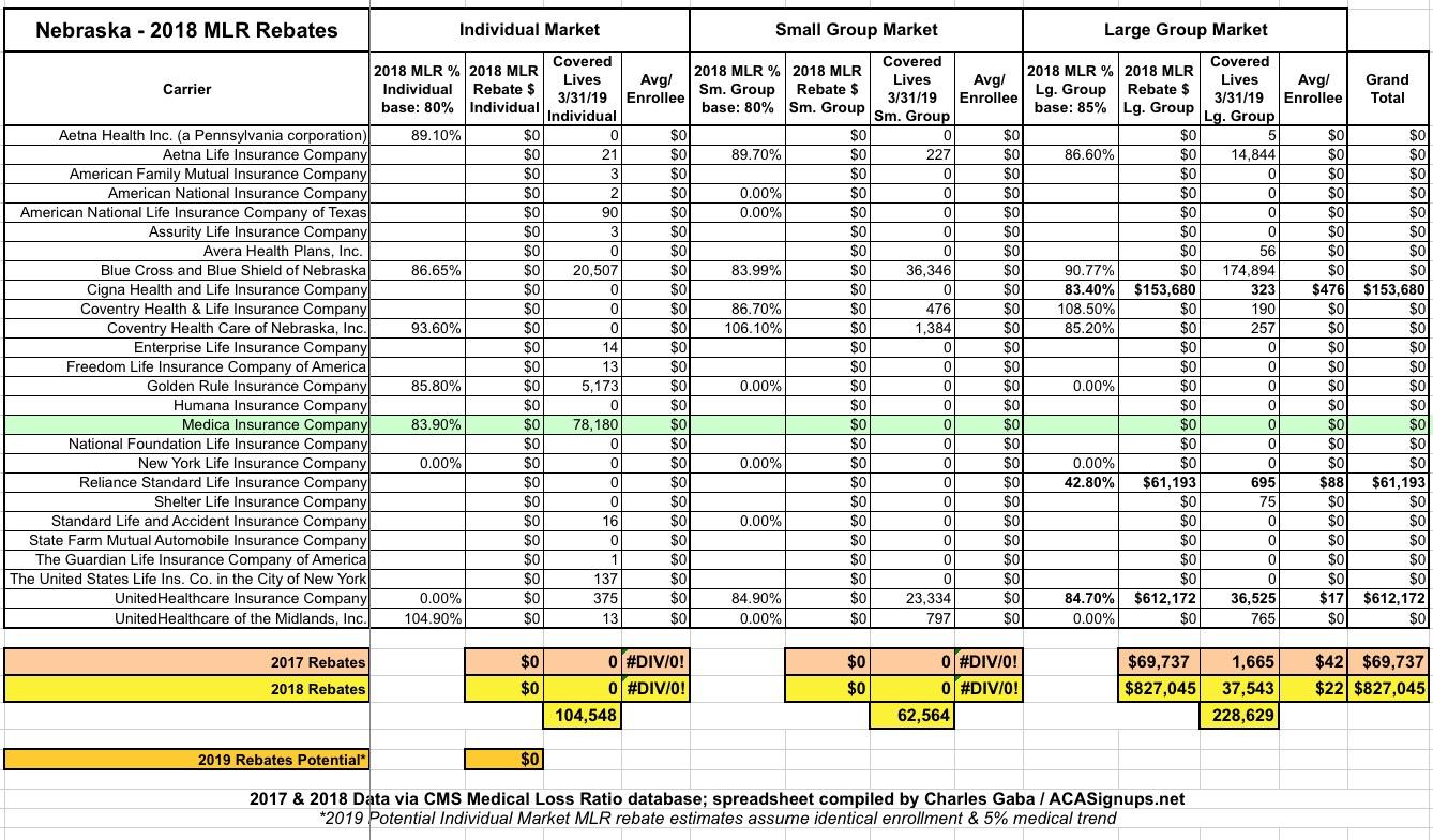 AGAIN: There's absolutely no guarantee that things will play out this way. It's possible that none of these carriers will make MLR payments next year, or only some of them will, or the amounts will be smaller. These 2019 projections are pure speculation on my part based on a number of big assumptions.