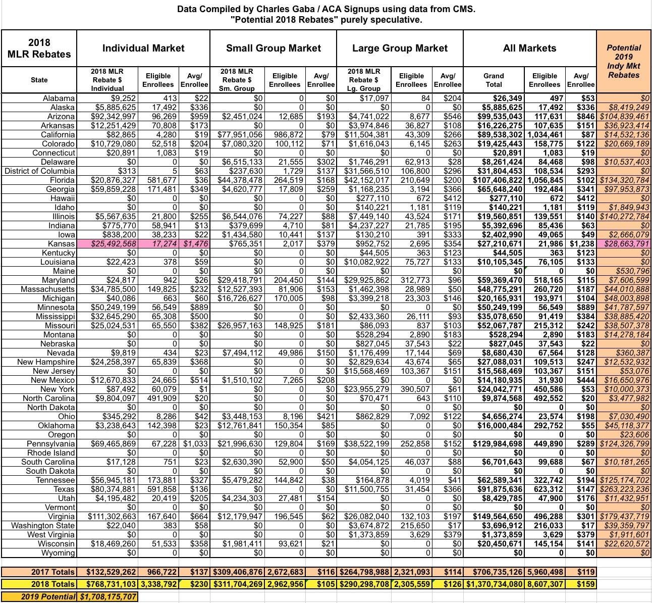 If you've been reading the site recently, you know that I've been obsessed for the past 2-3 weeks with nothing but the 2018 Medical Loss Ratio rebate payments.