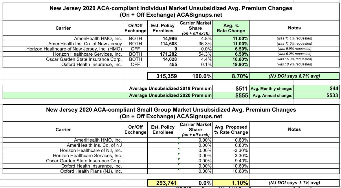 New Jersey: *Approved* avg. 2020 #ACA premiums: 8.7% (vs. +30% w/out mandate penalty & reinsurance)