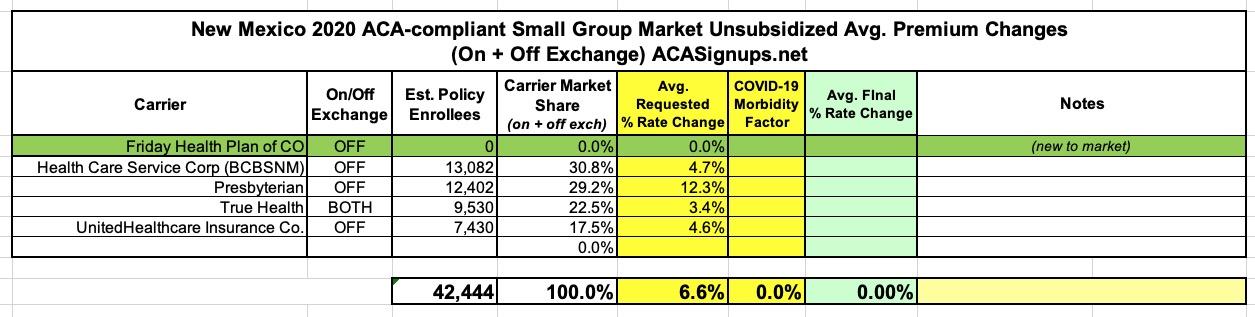 New Mexico is the latest state to post their preliminary 2021 rate change filings for both the individual and small group markets. There's several key things to note here: